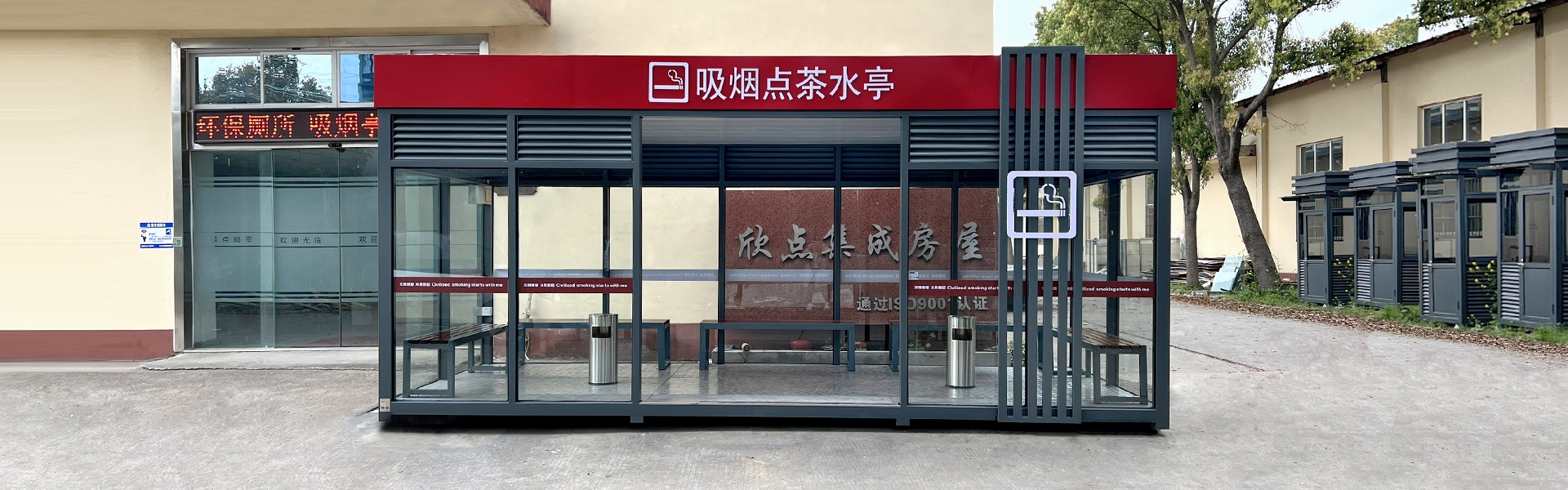 鋼化玻璃吸煙亭:光線明亮,安裝方便,工廠組裝好成品整體運輸吊裝到位,堅固耐用,使用壽命至少十年,重型鋼結構,抗臺風。頂部使用鋁板防水隔熱材料,保證下雨不漏水,隔音效果優(yōu)良。并且內置電路,只要通電就可以在亭內使用電力設施,室內配置休息椅和煙灰桶,方便的功能,時尚的外觀,實在是廣大禁煙場所的不二之選!