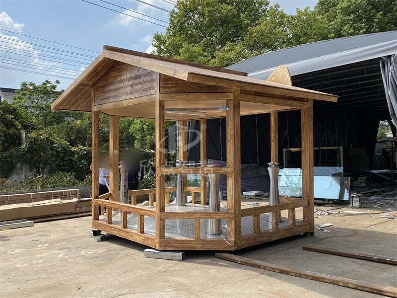 吸煙亭實(shí)拍:防腐木材質(zhì)