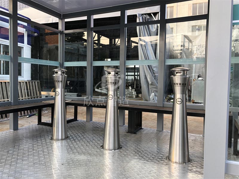 吸煙亭內(nèi)部配置:滅煙桶、休息椅