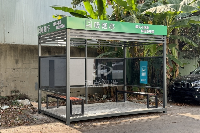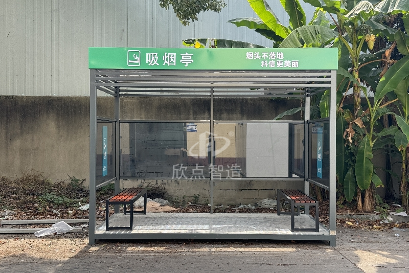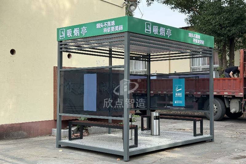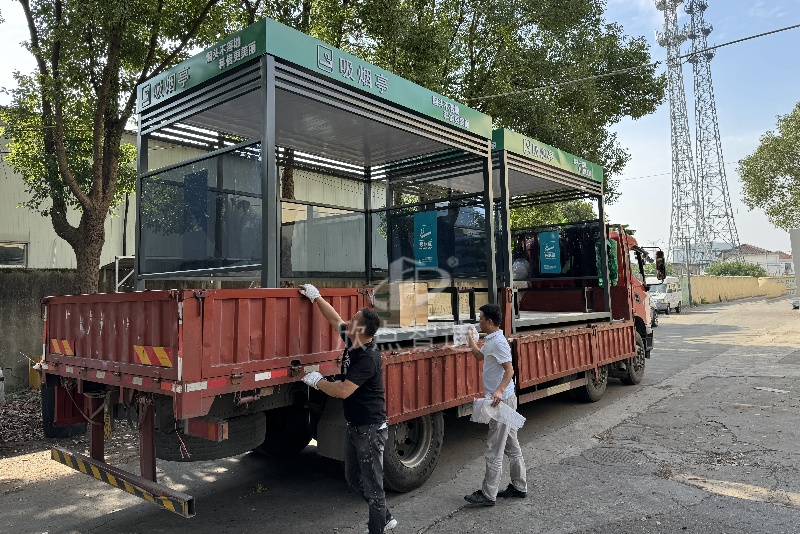 欣點(diǎn)移動(dòng)吸煙亭完美出貨!高3米,寬2.5米,長(zhǎng)3.5米。下面跟著小編詳細(xì)觀賞一下吧~