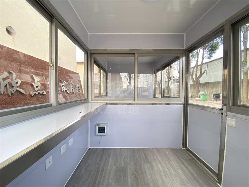 3、使用空間更合理化。用戶在定制保安崗?fù)r,都會根據(jù)其里面工作的人數(shù)和需裝置的辦公設(shè)備及保安崗?fù)さ姆胖脜^(qū)域的大小來確定崗?fù)さ某叽?,廠家還會來根據(jù)你的尺寸來設(shè)計空間,使空間更最大化的利用起來,這樣使保安崗?fù)な褂每臻g更加合理化。