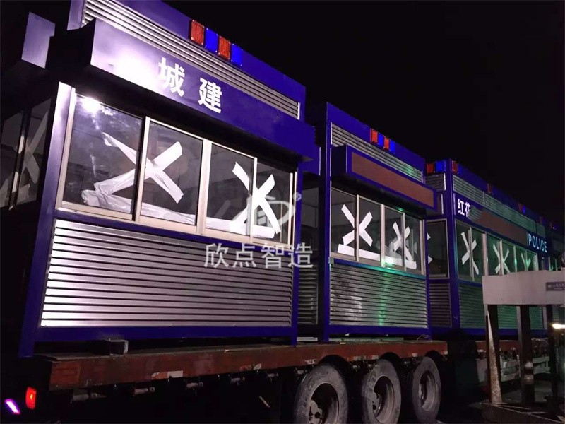 常用的警用治安崗亭尺寸有(寬*長*高):2m*2m*2.9m、2m*3m*3m、2*4*3m。2.5m*3m、2.5*3~5m*3m、2.5*5~8m*3m