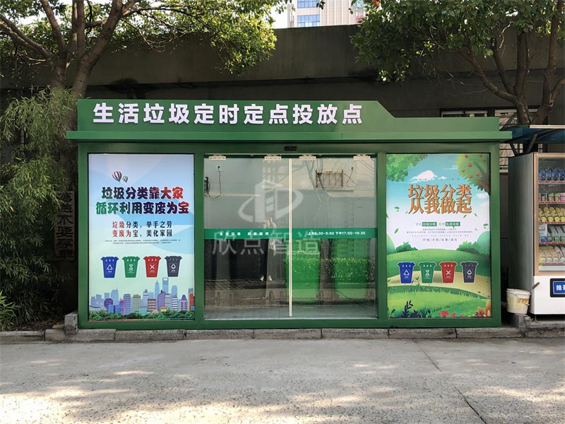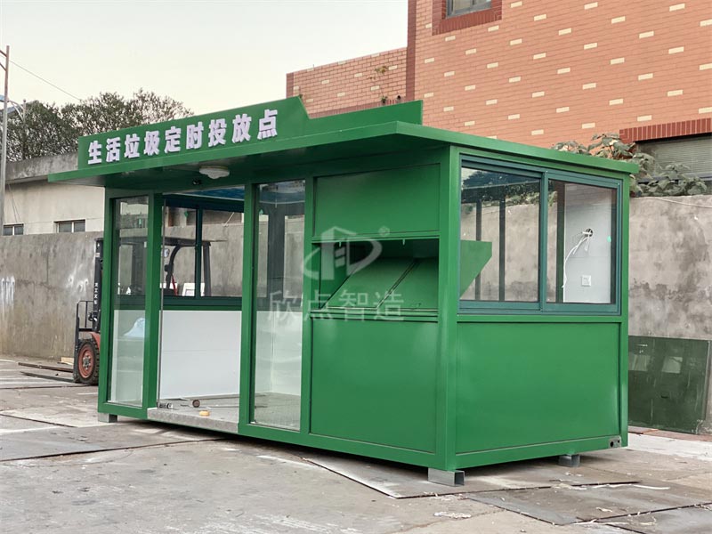 一般戶外垃圾房的要求,都是以鍍鋅鋼管作為框架,再加上金屬雕花板為外觀。這樣的智能垃圾分類房,外觀時(shí)尚現(xiàn)代,內(nèi)部空間大,根據(jù)人流量來(lái)選擇增加減少垃圾投放口。