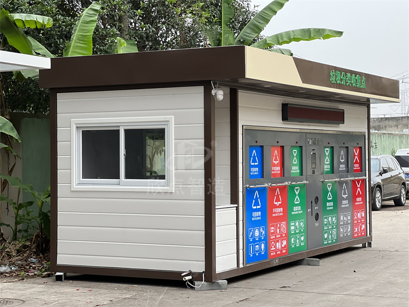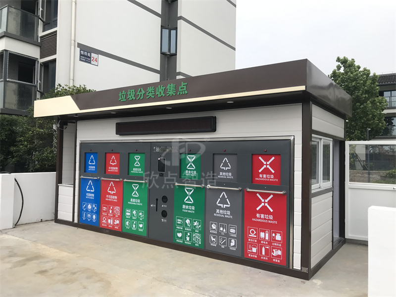 一般戶外垃圾房的要求,都是以鍍鋅鋼管作為框架,再加上金屬雕花板為外觀。這樣的智能垃圾分類房,外觀時(shí)尚現(xiàn)代,內(nèi)部空間大,根據(jù)人流量來選擇增加減少垃圾投放口。