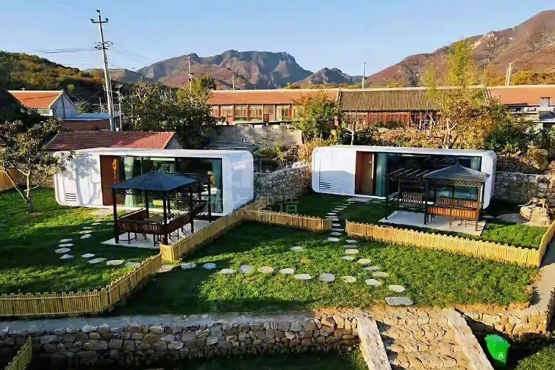 太空艙移動民宿打破了傳統(tǒng)的民宿形式,它不限地形和環(huán)境,整體吊裝落地于景區(qū)。房屋整體內(nèi)外太空鋁材質(zhì),中間添加了高性能的保溫隔熱材料,無需擔(dān)心夏天炎熱冬天寒冷,且外形吸睛。麻雀雖小,五臟俱全,在太空艙民宿內(nèi)部,客廳沙發(fā)區(qū)、淋浴間、洗手臺、臥室、陽臺一一俱全,投影儀、空調(diào)、地暖、新風(fēng)系統(tǒng)、戴森吹風(fēng)機、設(shè)施智能,體驗感極好。